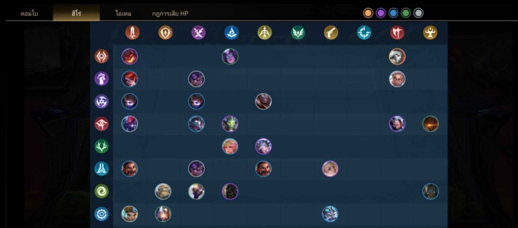 แบ่งฮีโร่ตามกลุ่ม (เผ่า) ครับ แบ่งออกได้เป็น 14 กลุ่มครับ